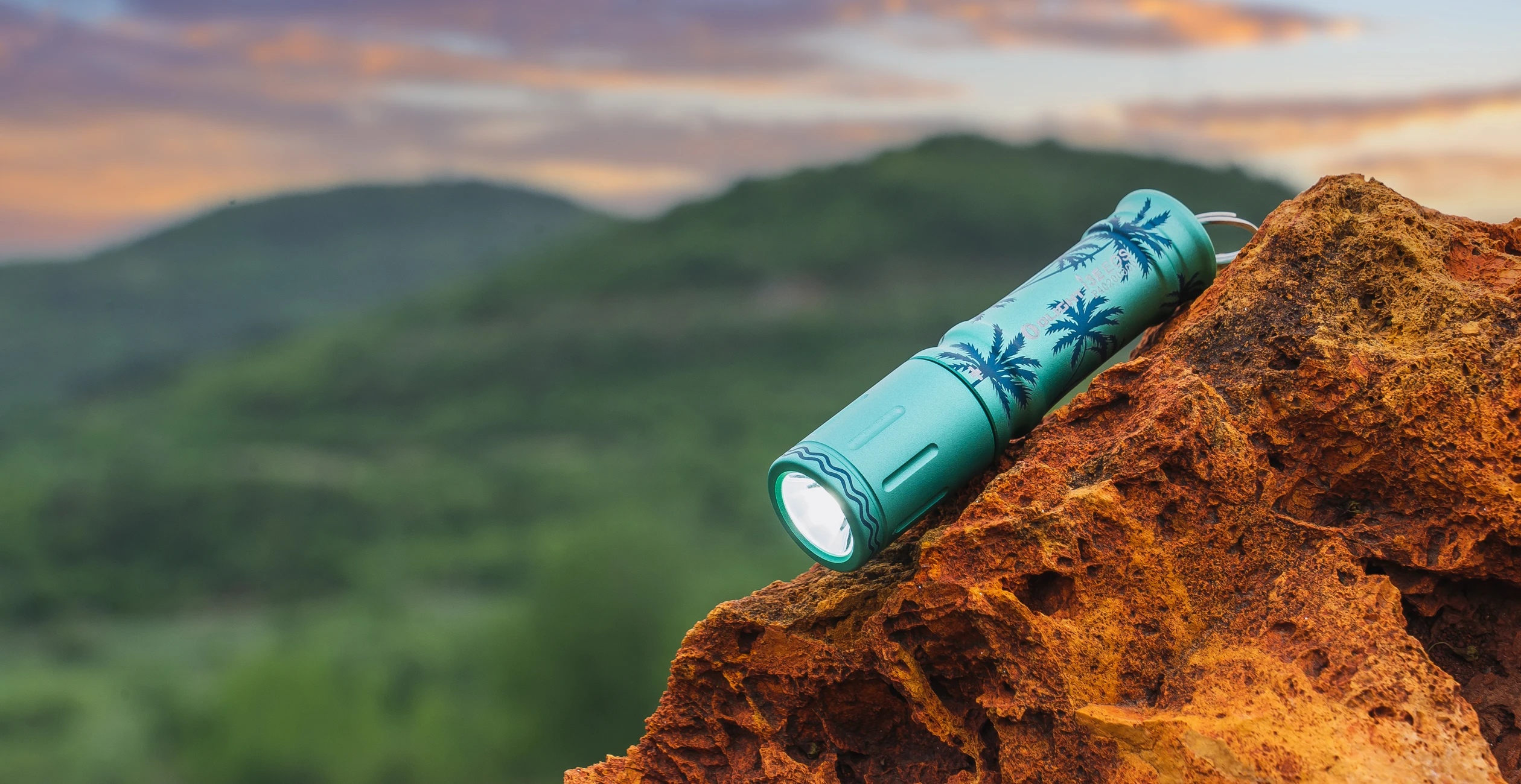 Olight I3E EOS mint green palm tree pattern keychain flashlight for everyday carry